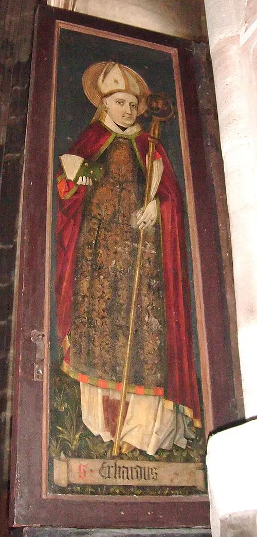 Unsere Kirche ist dem heiligen Erhard von Regensburg gewidmet, einem Bischof, der für seine missionarische Tätigkeit und seine tiefe Gelehrtheit im frühen Mittelalter bekannt ist. St. Erhard, der oft als Apostel der Ostmark bezeichnet wird, spielte eine zentrale Rolle bei der Verbreitung des Christentums in Bayern und darüber hinaus.